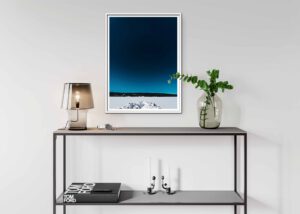 I sovrummet kan du skapa en avkopplande och lugn atmosfär med hjälp av posters som speglar vinterns stillhet. Posters med naturmotiv eller mjuka abstrakta mönster fungerar perfekt ovanför sängen eller på en tom vägg. Välj gärna motiv med mjuka övergångar mellan färgerna för att skapa en känsla av flytande harmoni.