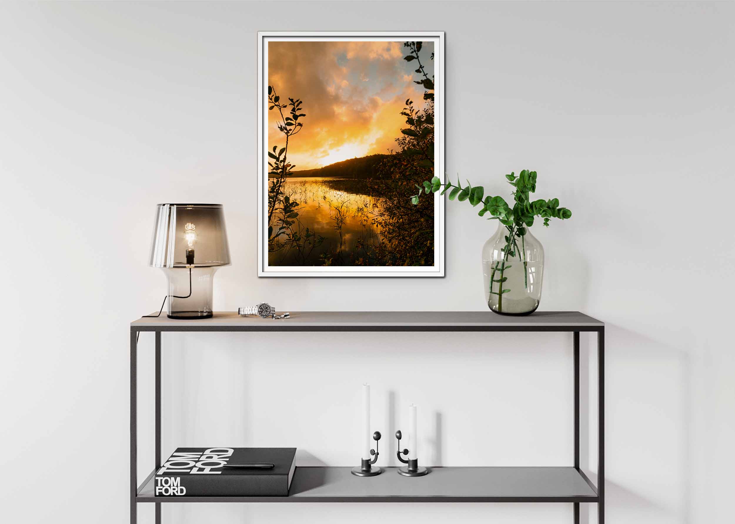 Bli först med att recensera ”Dramatisk gryning över sjö Poster”