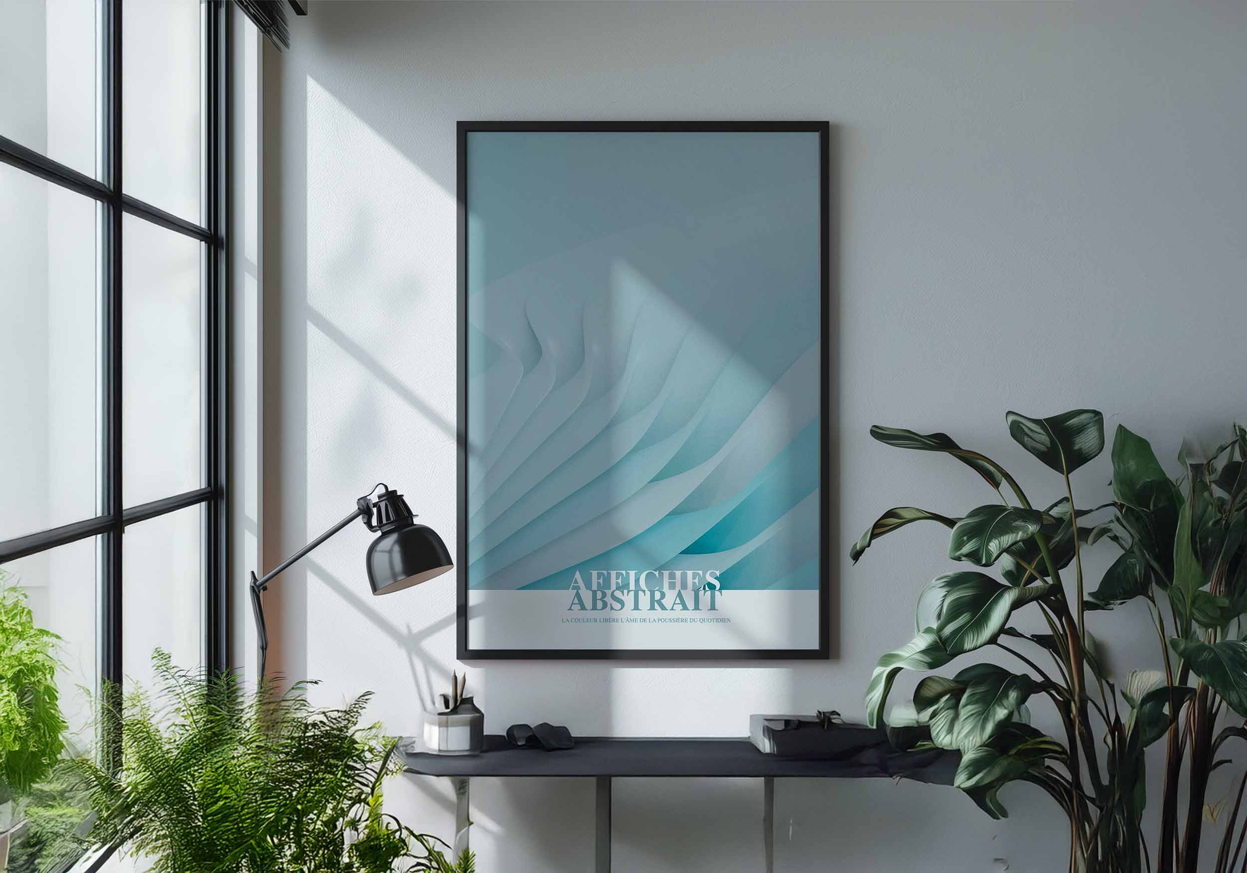 Bilden visar en abstrakt komposition av flera lager av mjuka, organiska former som överlappar varandra. Färgpaletten är dämpad och består främst av olika nyanser av blått, vilket skapar en känsla av lugn och harmoni. Formerna skapar en illusion av djup och rörelse, som om man tittar in i en oändlig spiral. Den övergripande känslan är lugn och meditativ.