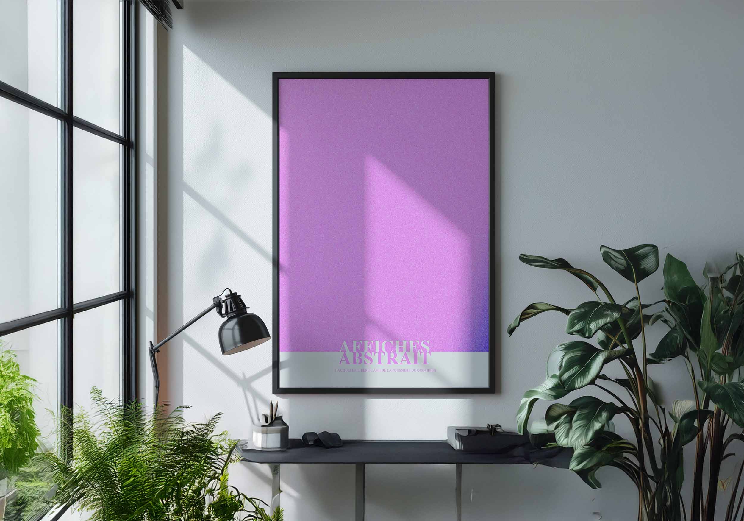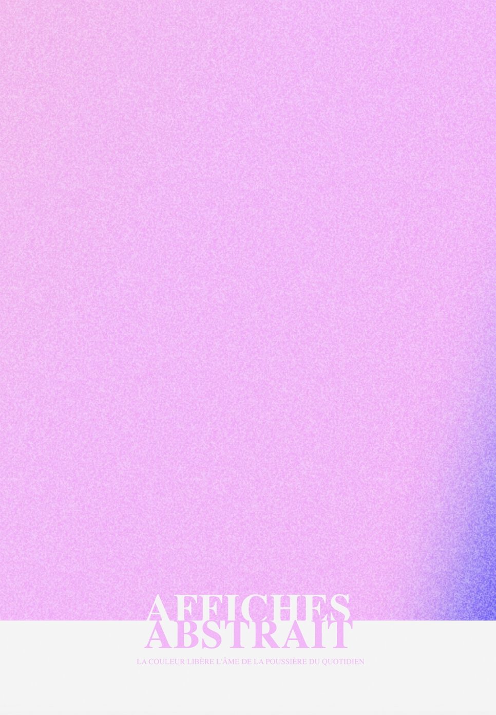 Bilden är en minimalistisk och drömlik komposition dominerad av en mjuk, pastellrosa färg. Ytan har en subtil textur som ger en känsla av djup och dimension. Mot den rosa bakgrunden syns en vit remsa längst ner där texten ”AFFICHES ABSTRAIT” är placerad. Texten är stiliserad och skapar en kontrast till den mjuka bakgrunden. Den övergripande känslan är lugn och harmonisk, med en touch av retro.