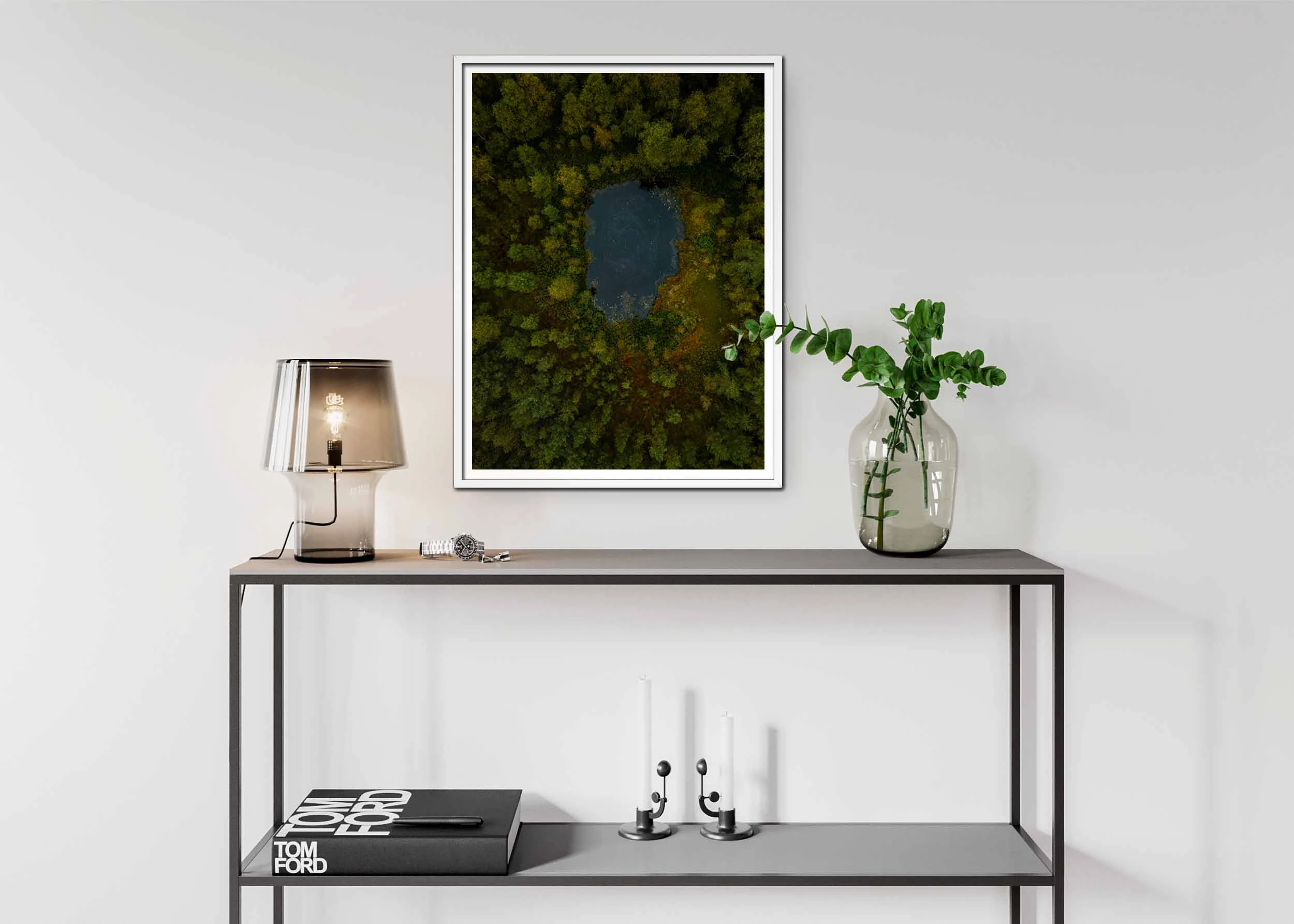Tavla: Mystisk tjärn omgiven av tät skog Poster